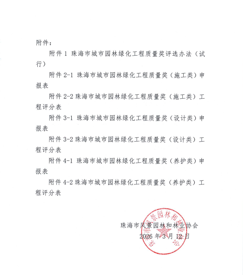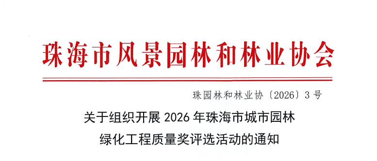 当前位置:首页 > 通知公告 > 关于开展2026年珠海市城市园林绿化工程质量奖评选活动的通知